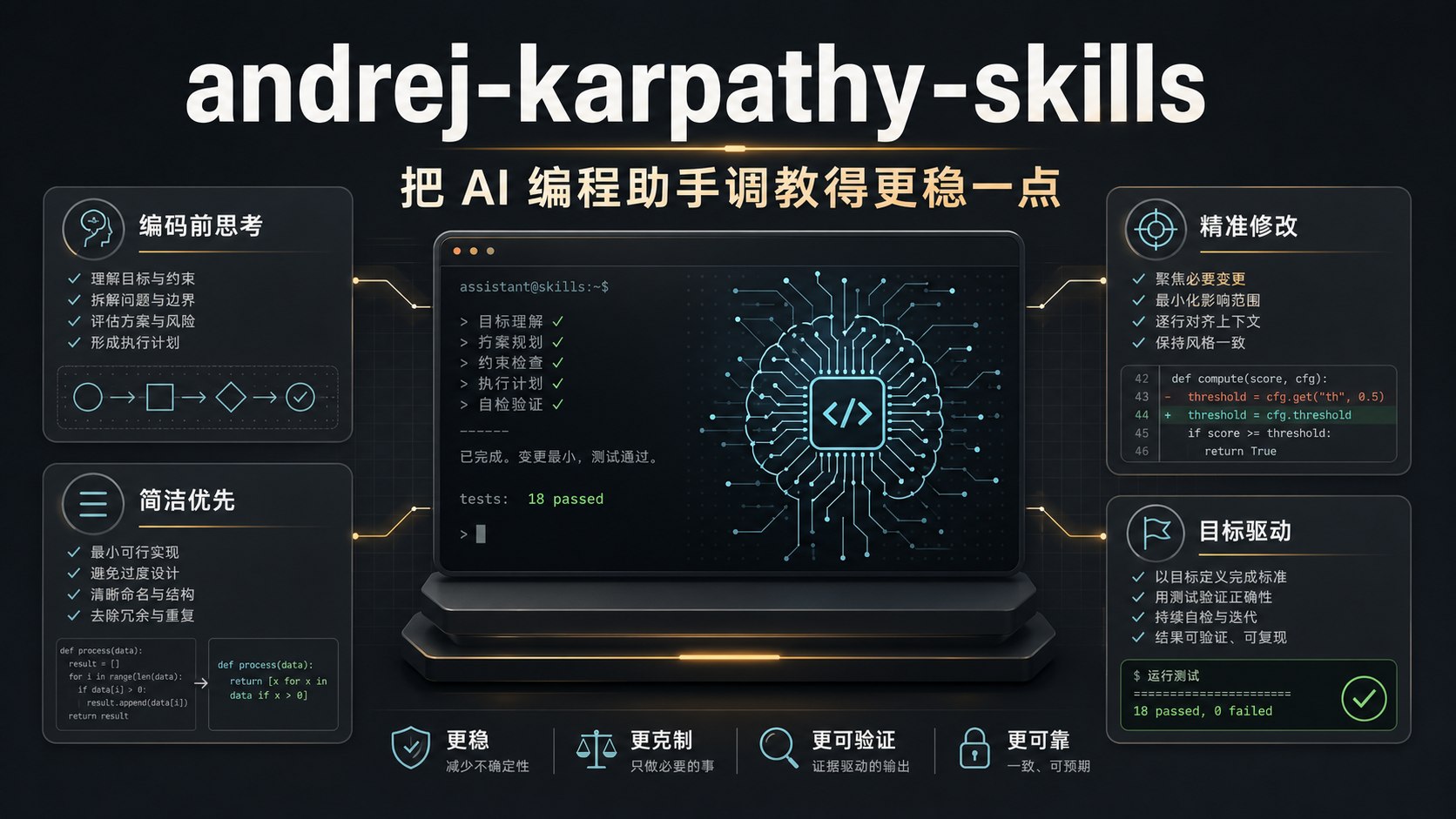 andrej-karpathy-skills 的亮点不在于“功能很多”,而在于它把 AI 编程里那些最容易踩坑的地方,整理成了一套足够简单、又能立刻落地的约束方式。